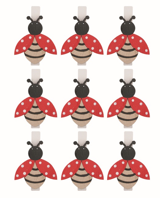 Beruška dřevěná 3 x 3,5 x 0,3 cm na kolíčku, 6 ks v sáčku