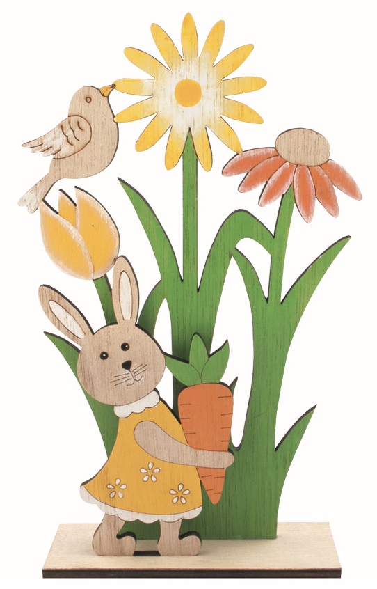 Dekorace zaječice s mrkví 12,5 x 20,5 x 4,5 cm na postavení