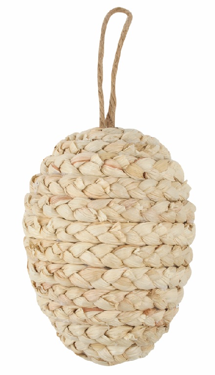 Stylové dekorační vejce na zavěšení přinese do vašeho domova jemný a elegantní doplněk vhodný pro jarní či velikonoční výzdobu. Vejce je vyrobeno z kukuřičného šustí a nabízí možnost snadného zavěšení díky praktickému poutku. Hodí se jako samostatný dekorativní prvek na větvičky nebo závěsné ozdoby.