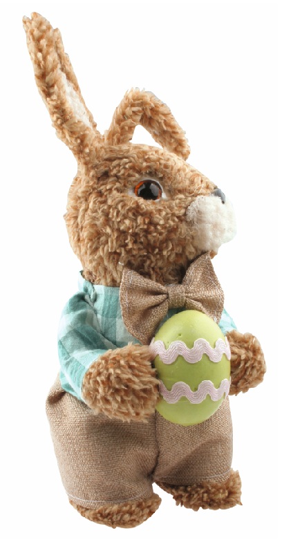 Roztomilá dekorace ve tvaru zajíce přinese do vašeho domova svěží a veselý jarní akcent vhodný pro velikonoční výzdobu. Figurku tvoří stylizovaný zajíc s jemnými detaily srsti a charakteristickými ušima, které lze ohýbat a tvarovat. Zajíc drží v tlapkách velikonoční vajíčko. Dekoraci lze snadno umístit na stůl, poličku, parapet nebo komodu, kde se stane samostatným dekorativním prvkem a oživí váš interiér.