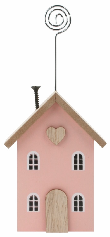Domek s držákem dřevěný růžový 8 x 17 x 3 cm na postavení