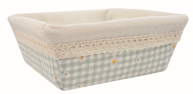 Látkový košík v příjemném tyrkysově modrém provedení s květinovým dekorem je stylovým a praktickým doplňkem pro jarní a velikonoční výzdobu. Díky pevné látkové konstrukci je vhodný pro aranžmá, menší dekorace nebo jako elegantní úložný prvek na stůl, poličku či parapet. Květinový motiv dodává košíku svěží a veselý akcent, který se skvěle hodí k sezónní dekoraci domova i aranžmá s dalšími dekoracemi.