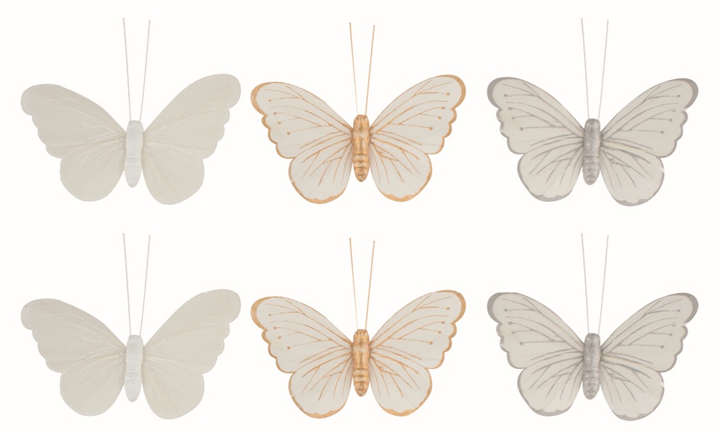 Veselá sada dekorativních motýlků s glitry na praktickém klipu je krásným doplňkem pro jarní, velikonoční i sezónní dekorace. Motýlci mají třpytivá křídla, která dodávají ozdobám zářivý a hravý efekt, a klip umožňuje jejich snadné přichycení na větvičky, květiny, věnce nebo jiné aranžmá. Díky optimálním rozměrům jsou tyto motýlci ideální pro použití ve výzdobě stolů, dekoracích pokojů, květinových aranžmá i kreativních projektech.