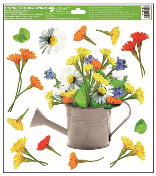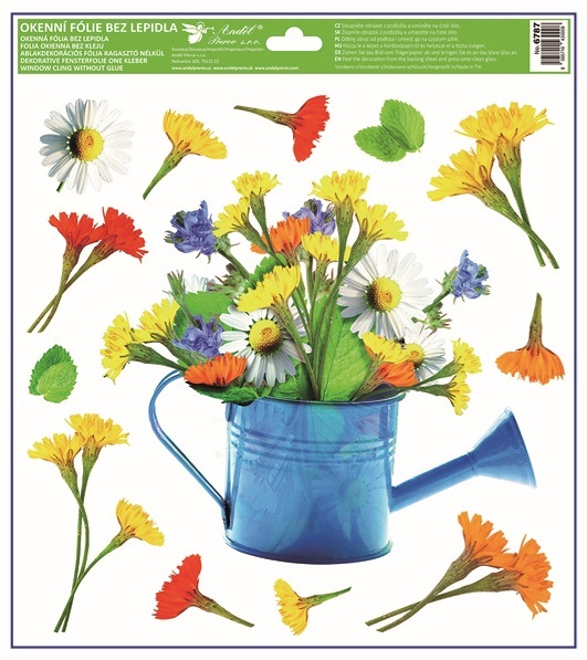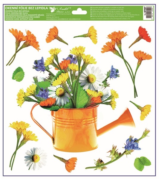 Tato dekorační okenní fólie s motivem barevných konví plných květin o rozměru 30 × 33,5 cm vnese do interiéru svěží jarní atmosféru. Přilne elektrostaticky – bez lepidla, nezanechává žádné stopy, snadno se aplikuje a je opakovaně použitelná.