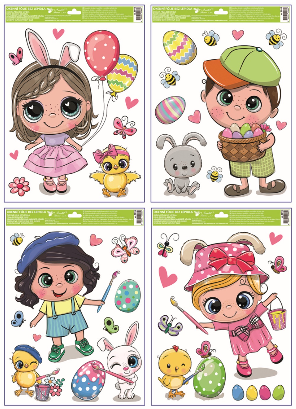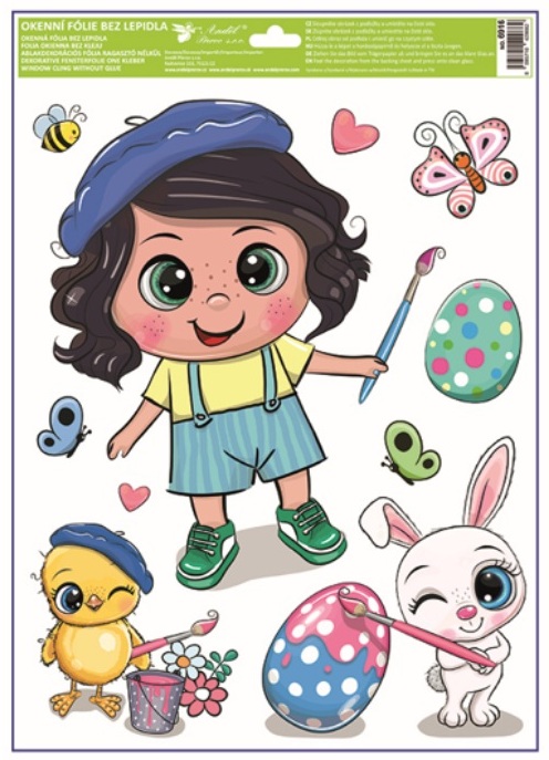 Motiv plný velikonoční radosti, barevných vajíček a roztomilých ilustrací krásně oživí okna, vitríny i zrcadla a vytvoří veselou sváteční výzdobu. Jemný třpyt glitrů dodá dekoraci atraktivní detail, který na světle krásně vynikne.
