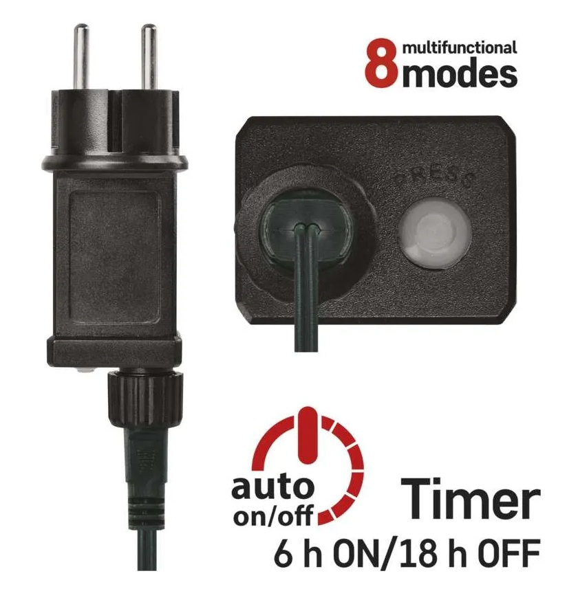 - Časovač: umožňuje automatické cykly svícení (bez nutnosti denního nastavování).