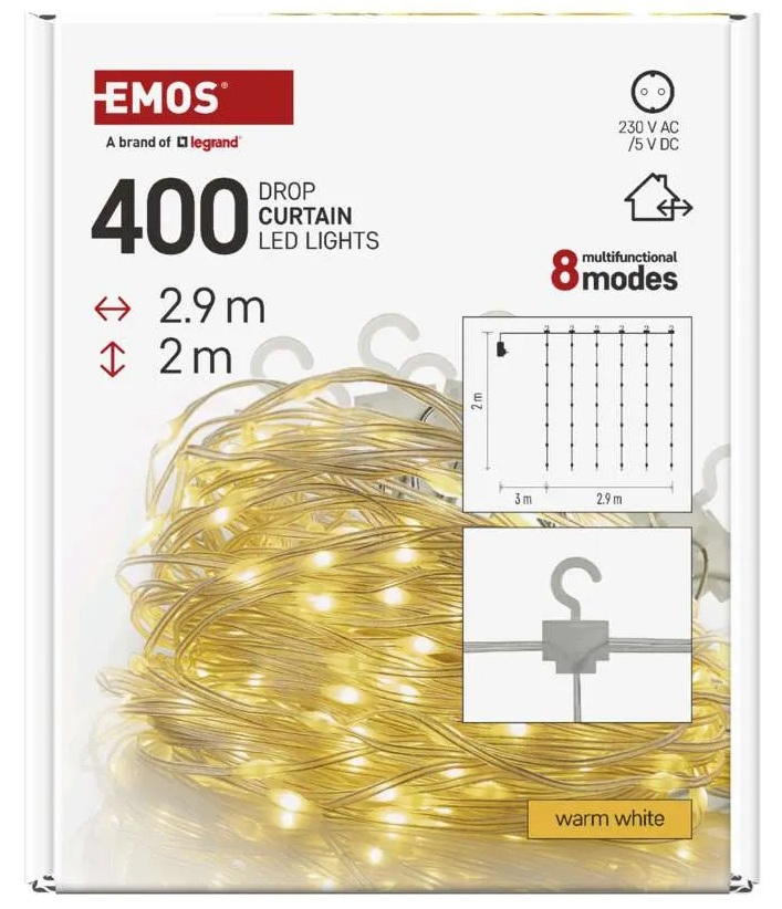 Elegantní světelná záclona je dokonalým doplňkem, který dodá jiskru každé výzdobě. Její drobné světelné výběžky na transparentním kabelu přirozeně splynou s okolím a vytvoří kouzelnou atmosféru. Nejvíce vynikne zavěšená za garnýž, kde nádherně rozzáří okna domova, ale díky krytí IP44 ji můžete použít i venku – na fasádě, pergole nebo pro prosvětlení výloh. Záclona během okamžiku promění jakýkoliv prostor v magické a romantické místo.
