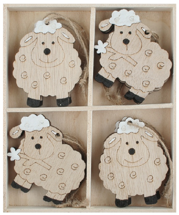 Ovce dřevěná 4,5 x 6 x 0,5 cm, na zavěšení, 8 ks v krabičce