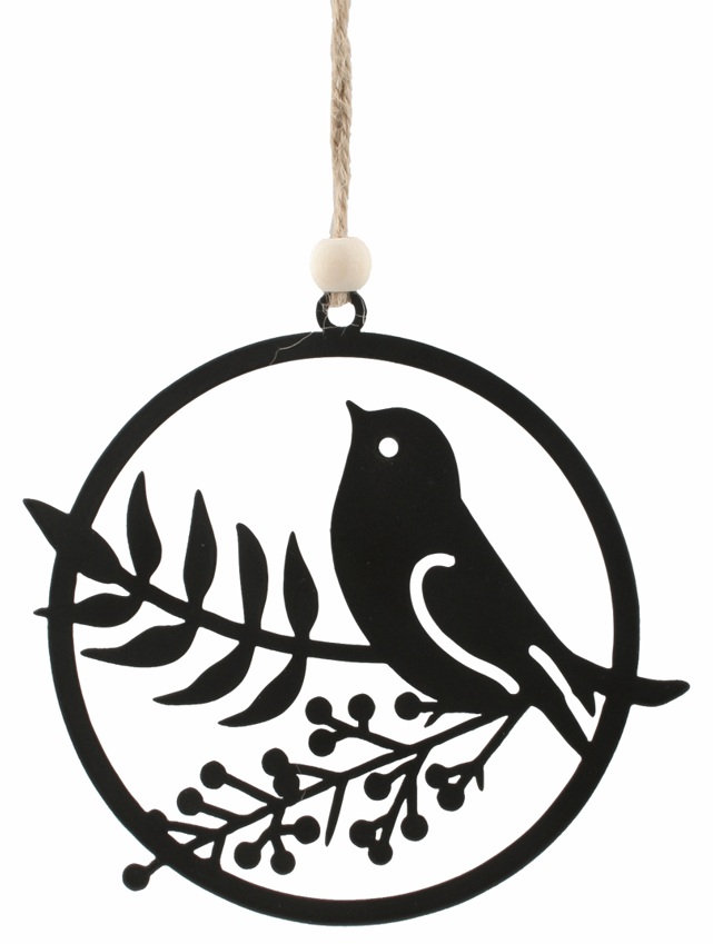 Pták v kruhu z kovu 11,5 x 11,5 x 0,3 cm na zavěšení