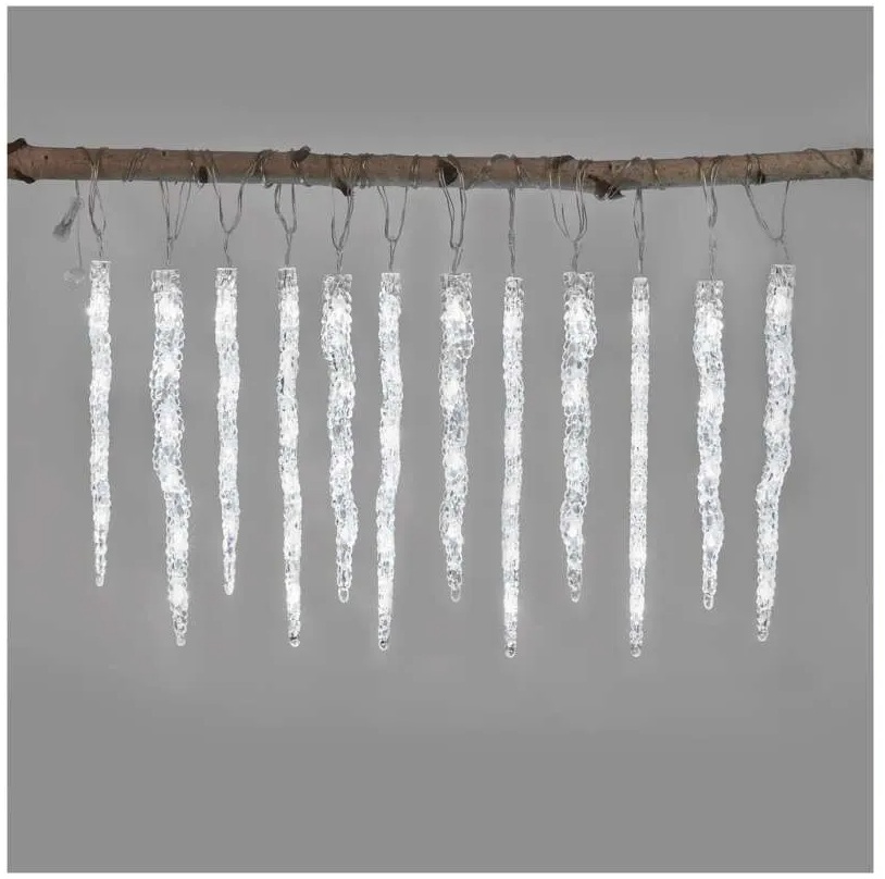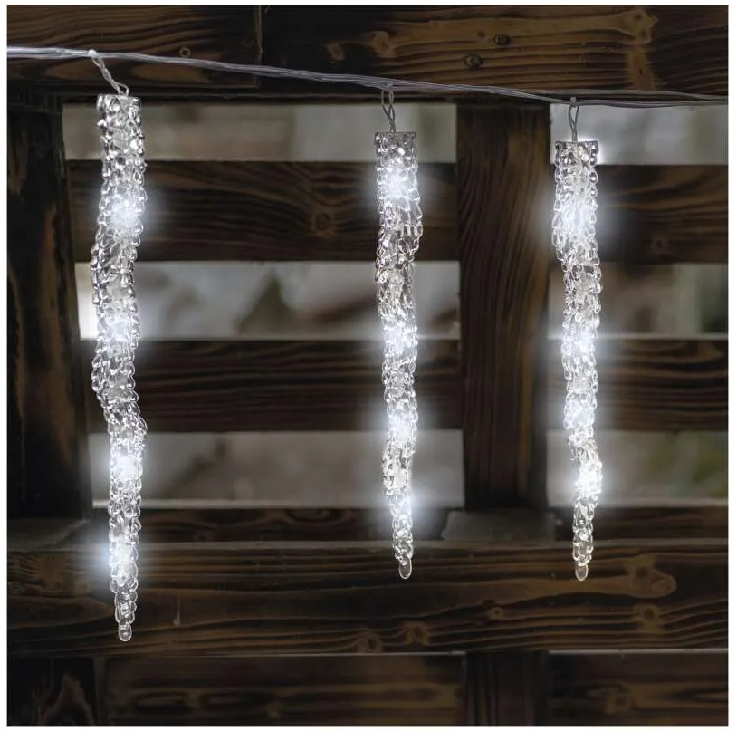 Vánoční girlanda s 12 rampouchy – 3,6 m, 60 LED, studená bílá, IP44