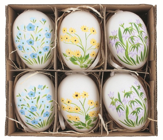 Sada velikonočních plastových vajec malované Kvítí 6 cm na zavěšení, 6 ks v krabičce