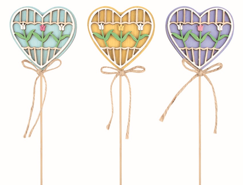 Srdce vyřezávané dřevěné 6,5 x 6,5 x 1 cm + špejle