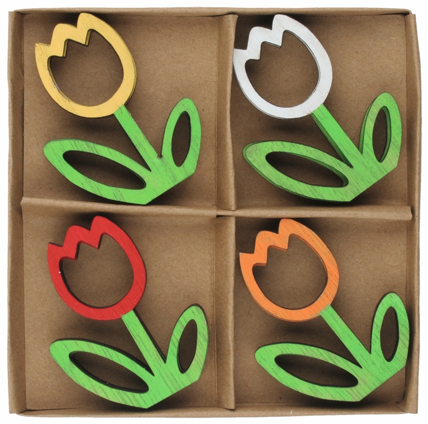 Tulipán dřevěný 4,5 x 6 x 0,5 cm, 8 ks v krabičce