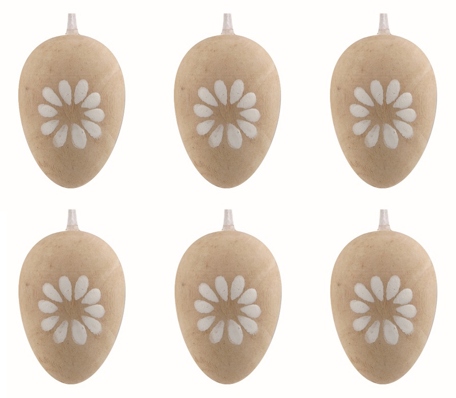 Vajíčka dřevěná 4 cm na zavěšení, 6 ks v sáčku