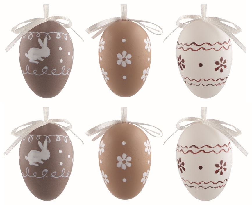 Velikonoční vejce plastová Hnědý dekor 6 cm na zavěšení, 6 ks v sáčku