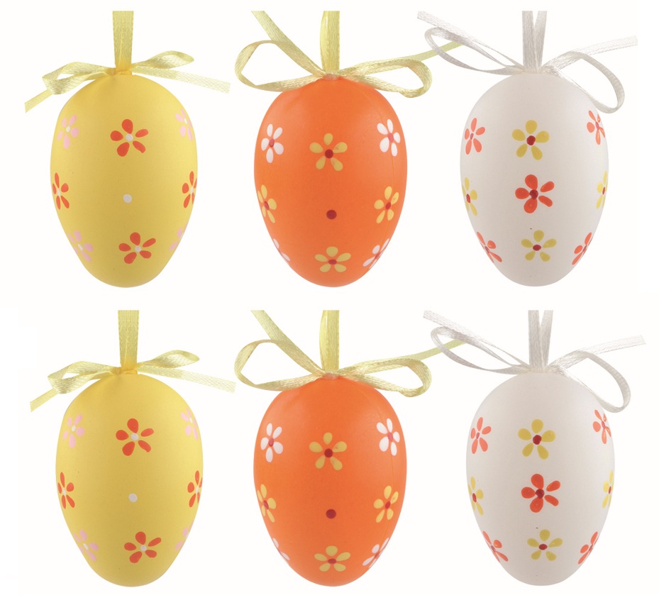 Velikonoční vejce plastová Květiny 6 cm na zavěšení, 6 ks v sáčku