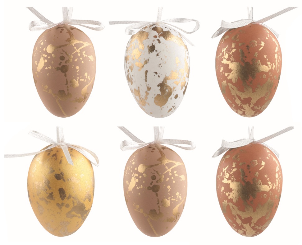 Velikonoční vejce plastová Se zlatým efektem 6 cm na zavěšení, 6 ks v sáčku