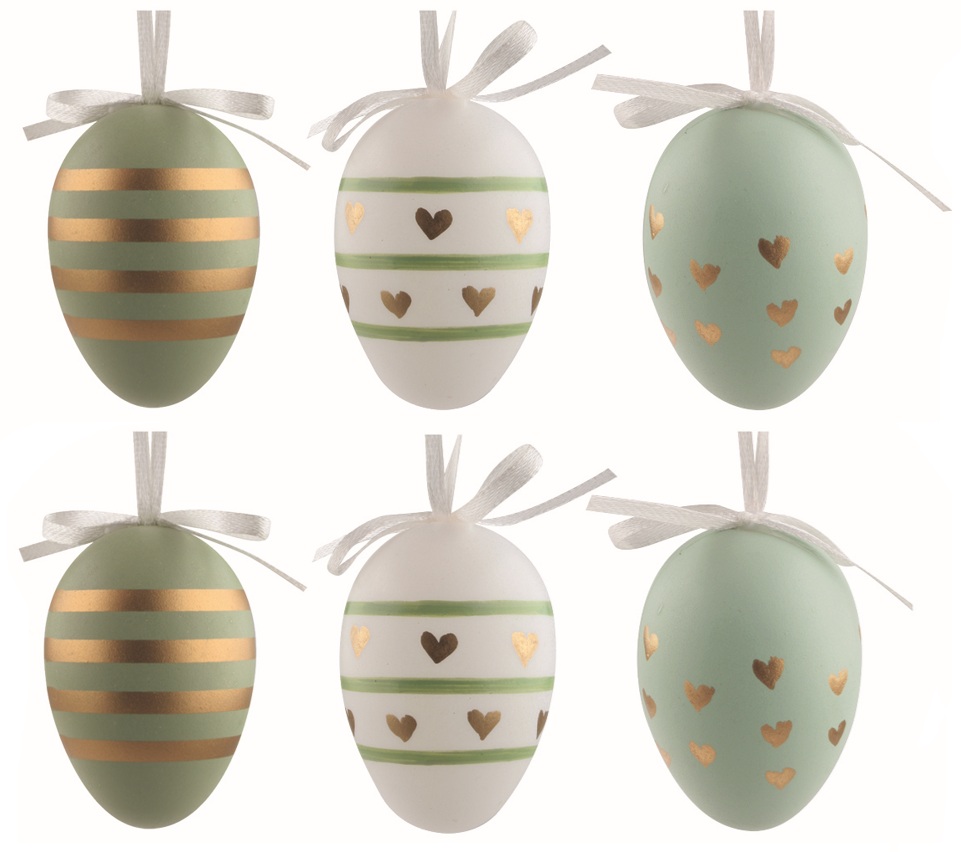 Velikonoční vejce plastová Zlatá srdíčka 6 cm na zavěšení, 6 ks v sáčku
