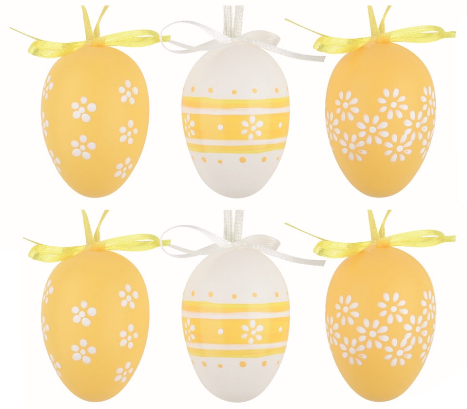 Velikonoční vejce plastová Žlutá kvítka 6 cm na zavěšení, 6 ks v sáčku
