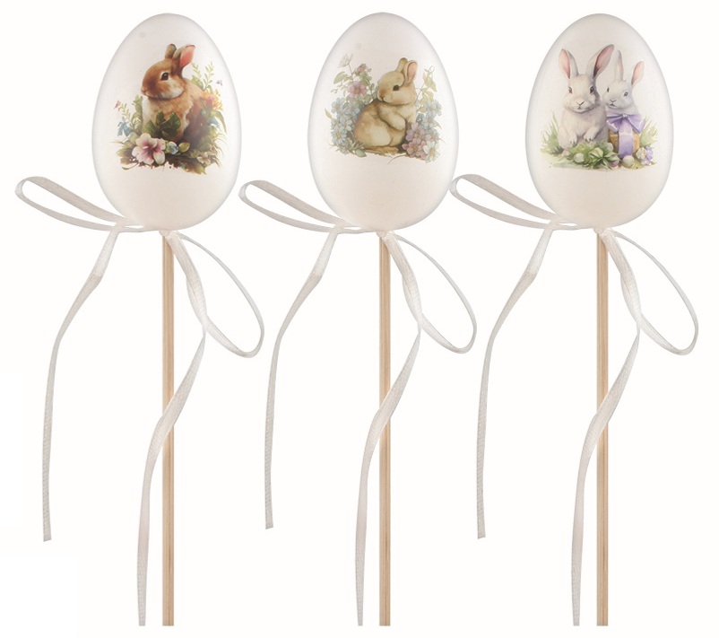 Velikonoční vejce plastové malovaný Zajíc 6 cm + špejle