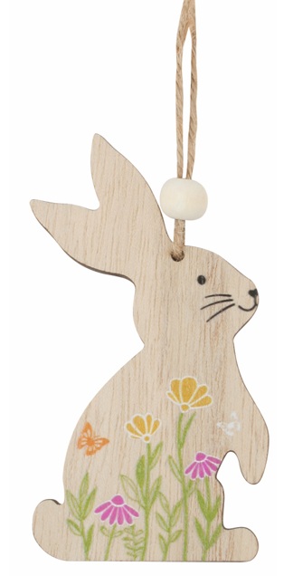 Zajíc s motivem louky dřevěný 5 × 9 × 0,5 cm, na zavěšení