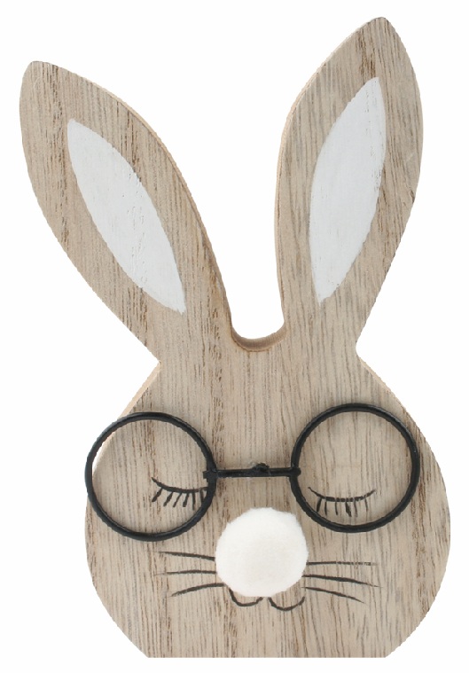 Zajíc v brýlích dřevěný hnědý 7,5 x 13 x 2 cm na postavení